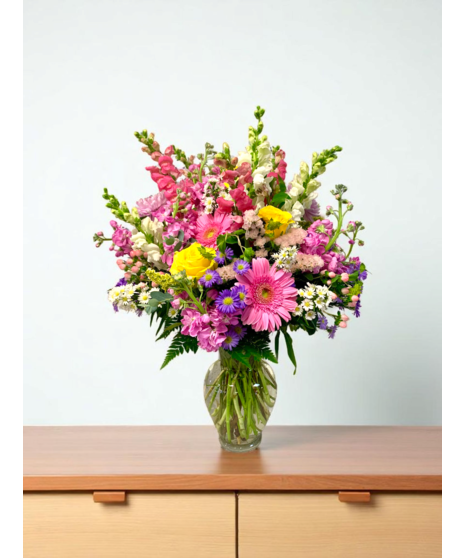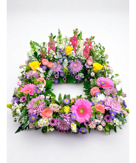 Colorful Remembrance A vibrant collection of sympathy arrangements in pinks, purples, lavenders, and soft yellows — thoughtfully crafted to celebrate vivid memories and offer a comforting sense of peace. Available in a variety of styles, including urn surrounds, casket sprays, standing wreaths, and vase designs.