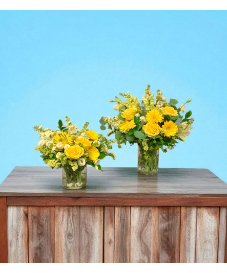 Butterbloom Palette A radiant symphony of yellow in every imaginable shade—from buttery soft pastels to bold marigolds and goldenrods. This cheerful design overflows with warmth, featuring blooms that catch the light like morning joy. It's arranged to feel like sunshine in full bloom—uplifting, graceful, and playfully elegant.