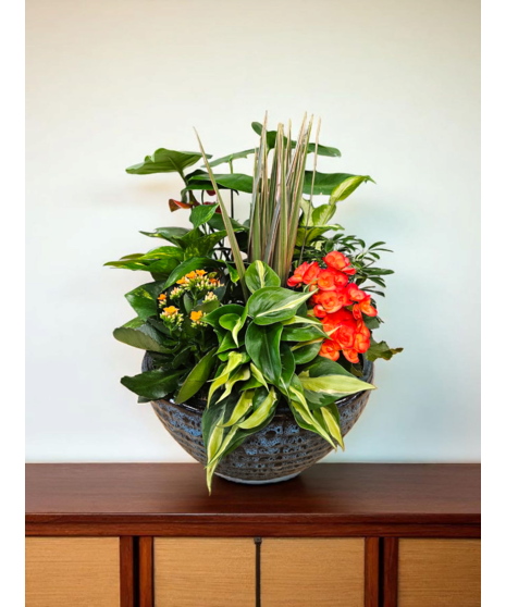 Our Euro Gardens are custom made each week in the greenhouses using different plants. The container and botanical varieties may vary.