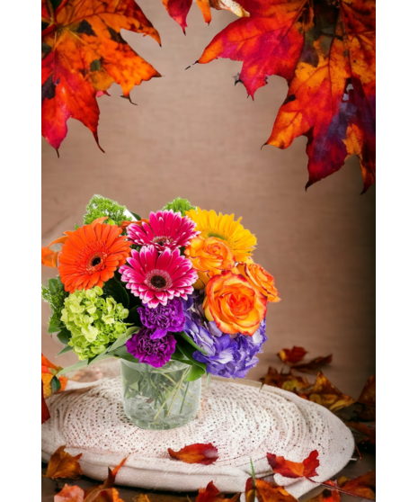 Send some smiles with this happy & bright bouquet! Filled with vibrant gerbera daisies, sunflowers, hydrangea and carnations. Medium and large versions also include calla lilies.