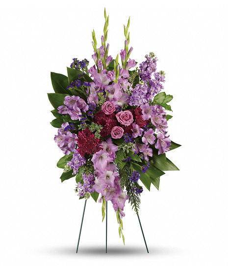 Console and comfort with this luxurious spray of lavender roses, alstroemeria and gladioli. It's a majestic way to remember the departed at the memorial service.