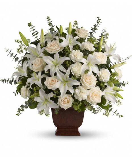 A simply beautiful way to show you care. By sending this elegant arrangement to the home of those in mourning, you are letting them know they are embraced in your thoughts. And in your heart.