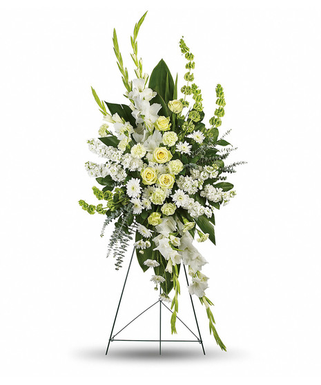 A magnificent symbol of love and peace, this pure white and green spray conveys your sympathy with elegance and grace.
