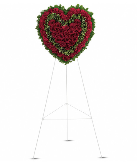Remember a loved one's generous heart with this red arrangement in a classic heart shape, a declaration of eternal love and devotion.